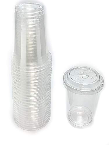 Generic - كوب بلاستيكي شفاف مع غطاء، 100 قطعة - 10 اونصة للمشروبات الباردة او المثلجة والعصائر - ضمان لمدة عام واحد