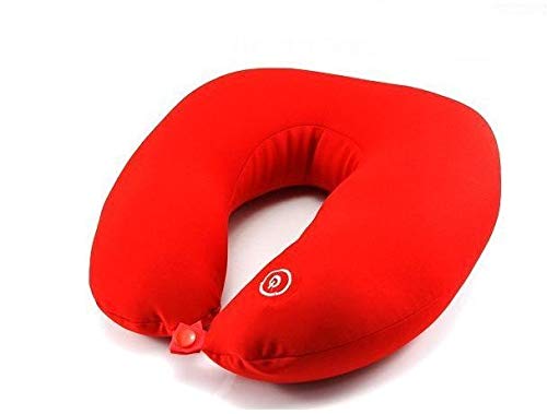 generic - one year warranty_Vibrating Microbead Neck Massage Travel Pillow- Red