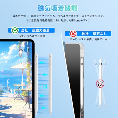- ❤【Convenient operation, comfortable & magnetic adsorption】 No Bluetooth connection or app needed. Easy to turn on and off with a simple tap on the top of the stylus pen. Very simple! The built-in magnet upgraded to the iPad pen has stronger suction than the traditional Apple Pencil, and attaches securely to the side of your iPad. Convenient for business trips and classes to prevent falling or loss. (Note: This function is only compatible with iPhone models that support magnetic adsorption)