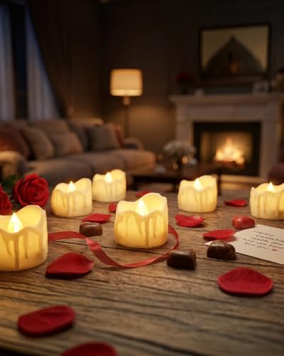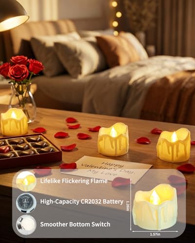 - [ LIFELIKE CHARM ] – Oneihomm LED tea lights mimic real candles with soft, enhanced flickering, and melting edges that add a cozy and warm ambiance to your table centerpieces, any room in your home, or an outdoor dinner party.