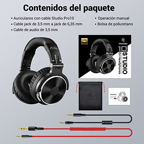 OneOdio - OneOdio Over Ear Headphones with Cable, 50 mm Driver, Bass Sound, 6.35 & 3.5 mm Jack, Share Port, Closed DJ Headphones for Studio, Podcast, Monitor, Mobile Phone, PC, MP3/4 (Pro-10 Black)