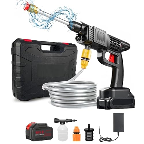 - ✅LIGHTWEIGHT AND EASY TO ASSEMBLE - This high pressure cordless washer is comes with a 5M hose that are easy to store. Compared with traditional washing machines, our cordless pressure washer are lighter and more portable. Just spent a few minutes to complete the installation and start your work.