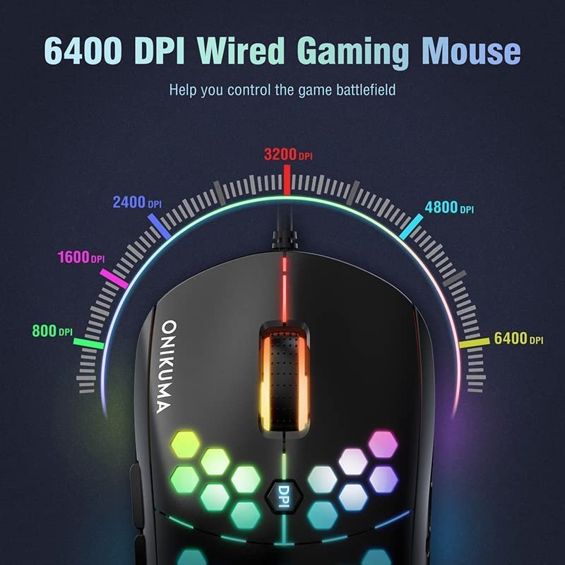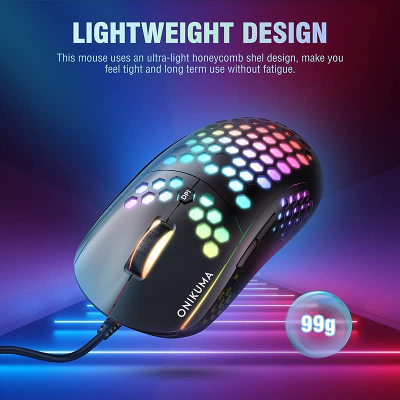 Generic - Onikuma CW903 RGB Lightweight Honeycomb Shell Gaming Mouse - 6400 DPI - 6 Programable Buttons | HighEnd