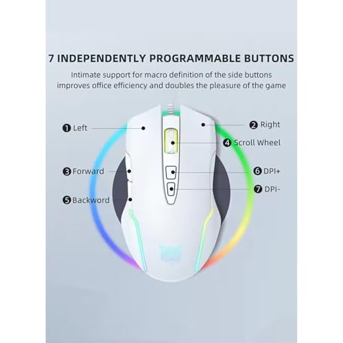 - تصميم عملي بـ 7 أزرار: يتضمن اليسار، واليمين، وعجلة التمرير، والأمام، والخلف، ونقطة في البوصة+، وأزرار نقطة لكل بوصة، مما يتيح التبديل السريع والتحكم المحسن للألعاب والتصفح.