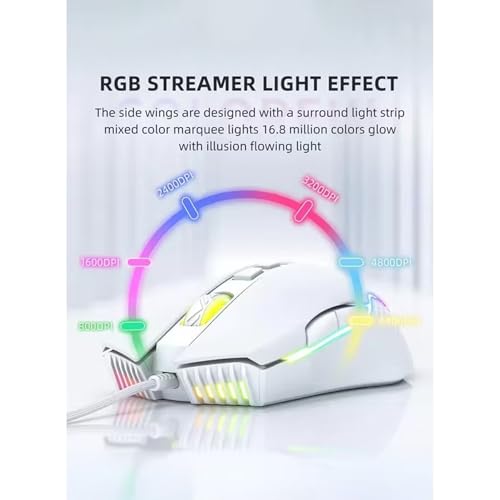 Generic - ماوس ألعاب سلكي أونيكوما CW905 قابل للتعديل 6400 نقطة في البوصة بنمط بصري بـ 7 أزرار وتصميم متماثل مريح ومضاد لبصمات الأصابع ومقاوم للعرق مع إضاءة خلفية آر جي بي قابلة للتخصيص