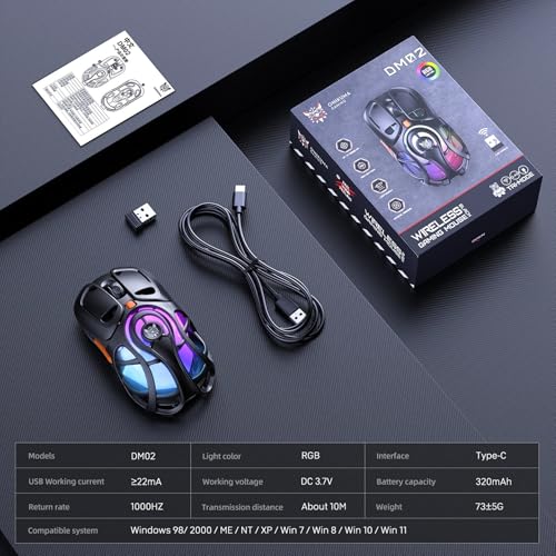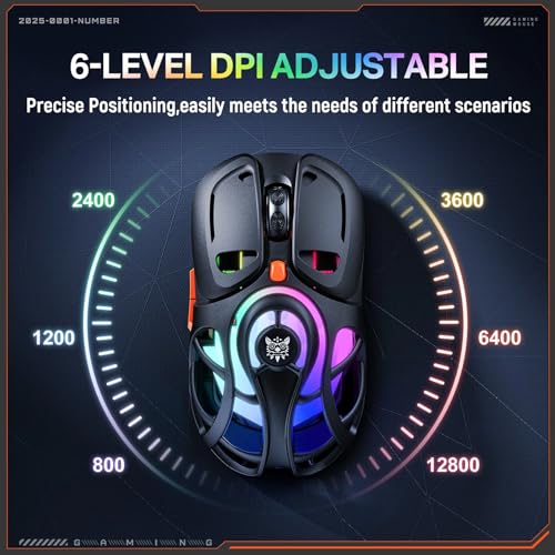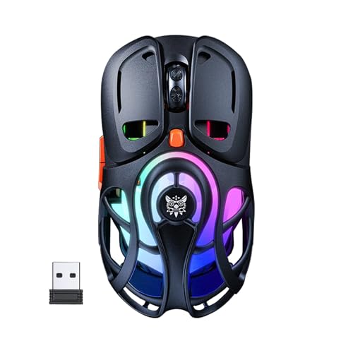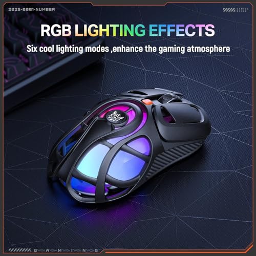 Generic - ماوس العاب DM02 ثلاثي الاوضاع RGB من اونكوما، لاسلكي 2.4 جيجاهرتز، بلوتوث وسلكي، تصميم خلية نحل خفيف الوزن، 6 مستويات DPI قابلة للتعديل حتى 12800، معدل تصويب 1000Hz، مريح