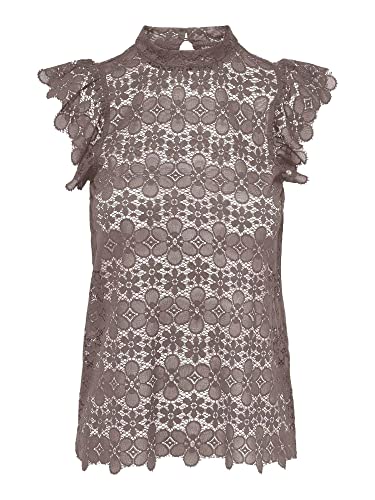 ONLY - بلوزة بأكمام قصيرة من الدانتيل الأشقر للنساء من اونلي