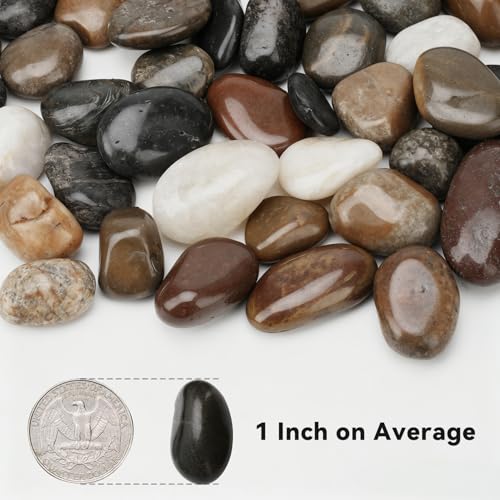 onlyfire - onlyfire 5lb Polished Pebbles, 1" Natural Decorative Mixed Color River Rocks Aquarium Gravel Stones for Landscaping, Indoor Plants, Vase, Succulent, Fish Tank