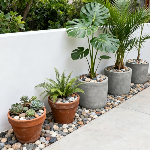 - 【River Rocks for Superior Plant Drainage & Health】-Promote healthier plants! Using these pebbles as a top layer helps soil retain vital moisture and provides excellent drainage to prevent root rot. It's a permanent, cost-effective alternative to wood mulch that keeps your garden looking pristine with minimal upkeep.