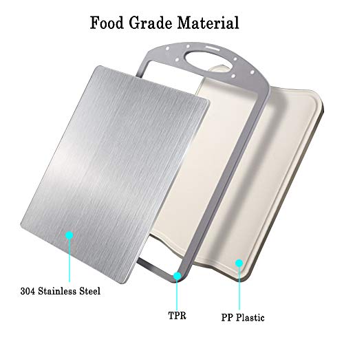- 【Antibacterial & BPA-free】Stainless steel cutting board compared with the traditional wood and bamboo material, it is very hygienic, easy to clean and resistant to scratches.