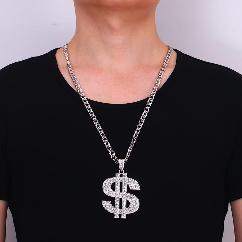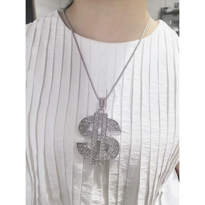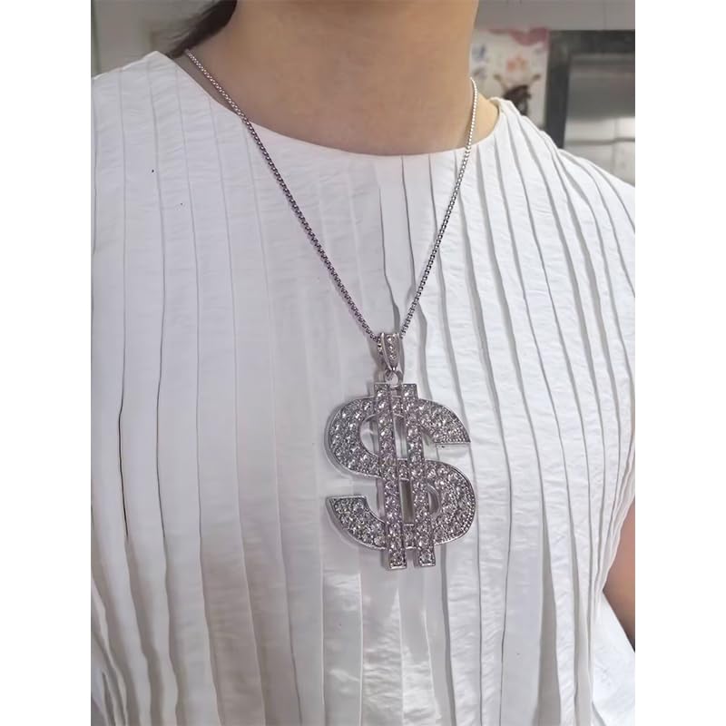 ONLYJUMP - اونلي جامب عقد بقلادة على شكل علامة الدولار الكريستالية المطلية بالذهب عيار 18 قيراط للرجال والنساء بتصميم عصري انيق من الستانلس ستيل بتصميم هيب هوب، قلادة بدلاية على شكل علامة النقود، هدية اكسسوار