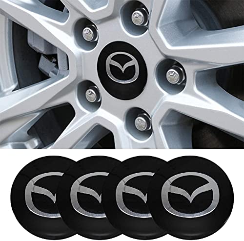 Onlylove - Onlylove 9-Piece Set 65mm Car Wheel Center Hub Caps Cover Decals Emblem Stickers Logo for Mazda with Mazda Keychain and Tire Valve Stem Caps