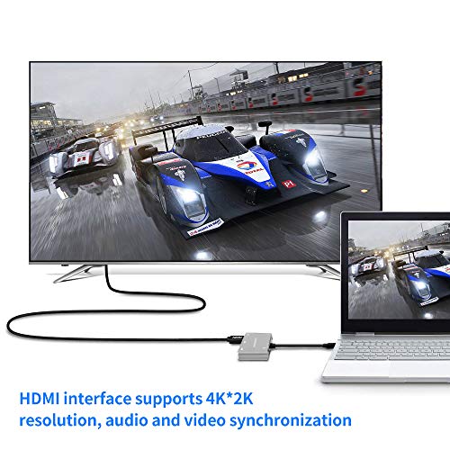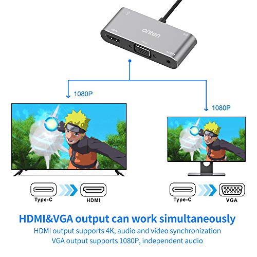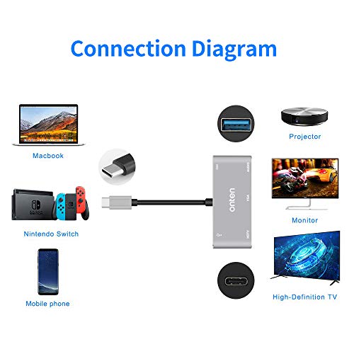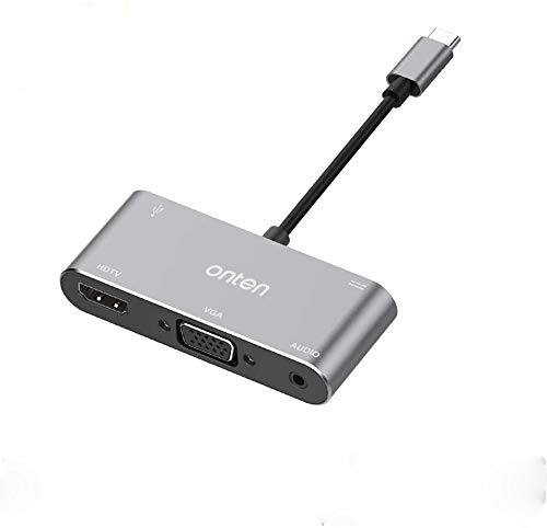 ONTEN - محول USB نوع سي الى HDMI VGA وUSB متوافق مع ثاندربولت 3 4K وVGA ماك بوك برو - ايباد 2018 M1 اير فضي من اونتين