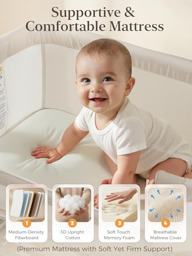- Comfort & Breathability for Newborns: ONTHEWEI bassinet bedside sleeper features a soft yet supportive mattress paired with a detachable skin-friendly fabric cover—creating a gentle, cozy space where baby stays comfortable for every moment. Safe 360° breathable mesh sides enhance airflow, visibility and easy monitoring, so you can relax