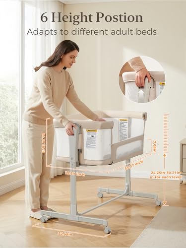 - 6-Level Height Adjustment: Effortlessly adjust ONTHEWEI baby bassinet’s height via side-mounted buttons (24.25in to 30.31in) to fit beds, sofas, or any surface seamlessly. Switch to the incline mode to effectively prevent baby’s spit-up, ensuring a comfortable, convenient feeding experience for both of you