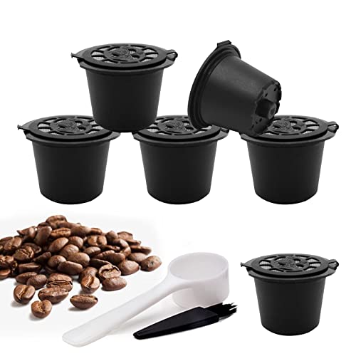 ONTOP - فلتر كبسولات قهوة قابل لإعادة الملء بتصميم متوافق مع ماكينات تحضير القهوة والنسبريسو معلقة لملء الكبسولات وفرشاة لسهولة التنظيف من اون توب عبوة 6 قطع ستانلس ستيل
