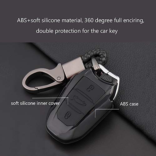 ontto - ontto Car Key Cover for Peugeot - ABS & Sillicone Protective Key Fob Cover for Peugeot 3 buttons Car Key Remote Smart Key Holder key jacket with Keyring key case