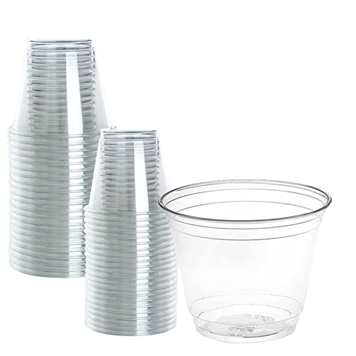 Oojami - Oojami 9 oz Clear Plastic Cups, 100 Count, Disposable Party Cups, PET, Recyclable and Durable Drinkware for Cocktails, Wine, Desserts, Weddings, Events, Parties