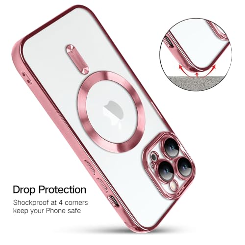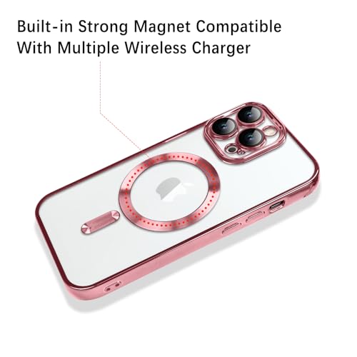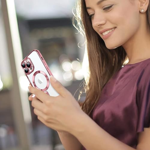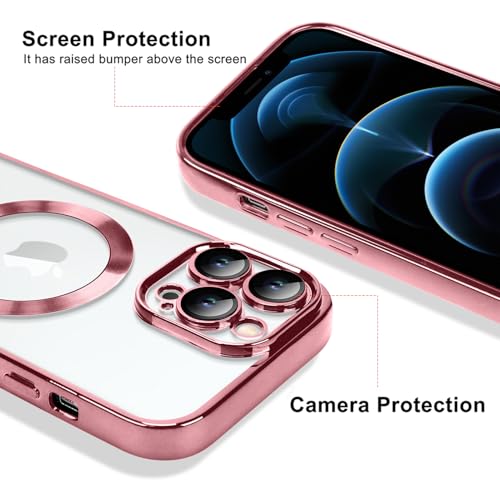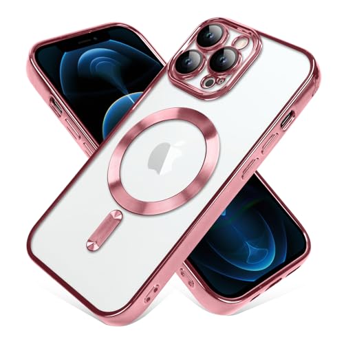 OOK - جراب موبايل مصمم لآيفون 12 برو ماكس (6.1 بوصة) مع واقي عدسة الكاميرا (متوافق مع ماج سيف)، جراب موبايل رفيع مضاد للخدش والصدمات مطلي بالكهرباء للنساء والرجال - وردي من اووك