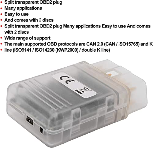 - Comes with a whole set of accessories, everything you need is included in this package. Split-type transparent OBD2 connector with a variety of applications, easy to use and equipped with 2 CDs.