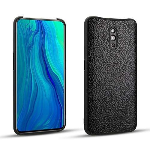 Generic - حافظة جلد اوبو رينو رفيعة للغاية من الجلد الطبيعي بتصميم كلاسيكي مضاد للصدمات بلون اسود