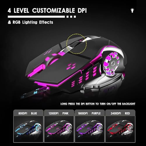 Generic - Optical Gaming Mouse Comfort USB Nylon Wired, 6 Button, 3600 DPI, High Performance Plug & Play, for Desktop, PC and Laptop Windows/Mac (Design with holes to prevent sweating) (ZR-1900, BLACK)