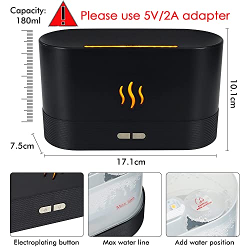 - [ A FEELING OF COOL AND FIRE ] -- Air humidifier for bedroom of realistic flame effect can be generated by the fire(smart LED lights) and the cool(mist from the diffuser). The spary volume of ultrasonic humidifier for rooms can be up to 15-20ml/h. You can choose either "gentle flame" or "violent flame" by a short touch or a long touch of the button of humidifier for car. With this Essential oil flame diffuser air humidifier at night, you will feel really relaxing and healing.