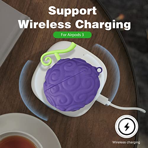 Oqplog - جراب من السيليكون بتصميم فاكهة بنمط كرتوني ثلاثي الابعاد لطيف ومرح وانيق وعصري للبنات والاولاد والمراهقين لعلبة سماعات ايربودز 3 الجيل الثالث (2021) لون ارجواني من اوكبلوج