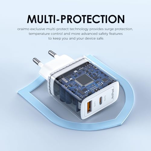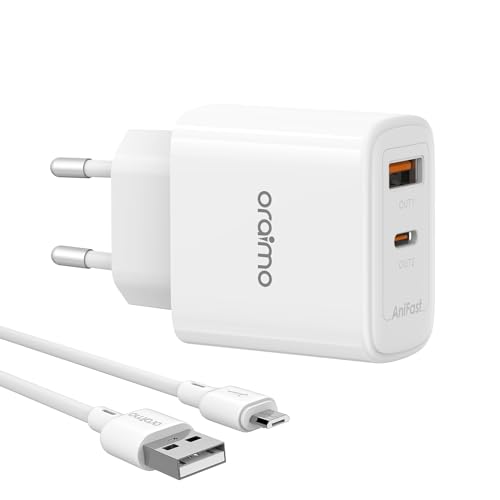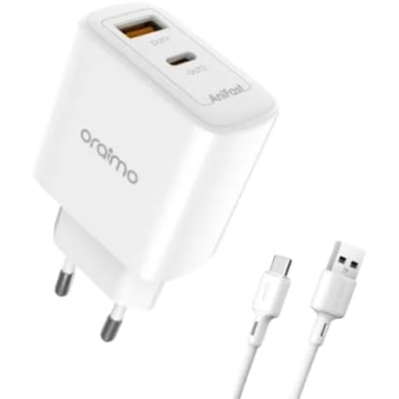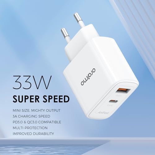 Oraimo - شاحن سريع بمنفذين 33 وات، شاحن حائط USB C، محول طاقة سريع الشحن متوافق مع آيفون 14/13/12/X، وسامسونج S21/S20/نوت 20/10/9/8 وغيرهم من اورايمو