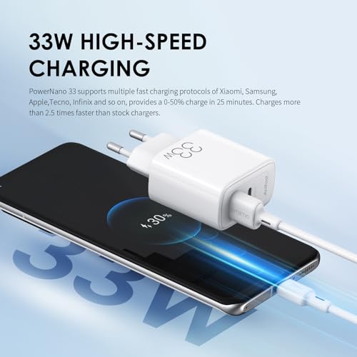- 🥇【استمتع بالمرونة التي تتيحها الكابلات المتوافقة مع USB-C】شاحن حائط USB C سريع الشحن بقدرة 33 وات متوافق مع جميع كابلات USB نوع C القياسية مثل USB-C إلى USB-C، USB C إلى الإضاءة، USB A إلى C، USB A إلى الإضاءة وما إلى ذلك، يمكنك تبديل أنواع الكابلات لشحن مجموعة متنوعة من الأجهزة المحمولة التي تمتلكها. فقط قم بتوصيل كابل، لا حاجة للتغيير تم توصيل المحول في منفذ الحائط الخاص بك. استمتع بمرونة USB نوع C، شحن فائق السرعة للبقاء جاهزًا.