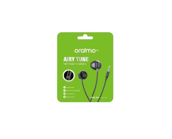 Oraimo - Oraimo Halo Lite OEP-320 Wired Earphones – Deep Bass Stereo Sound, HD Calling Mic, Ergonomic Fit – Light Gold