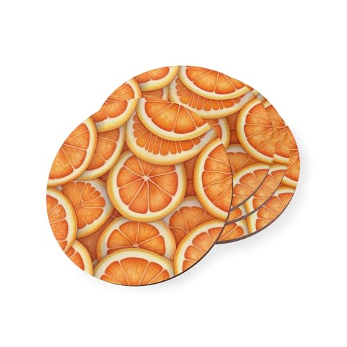 Generic - Orange Coasters - Set of 4 Citrus Fruit Drink Coasters Wooden Coaster Set Heat-Resistant & Durable - Set of 4