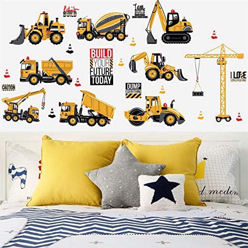Al Adham - جرار برتقالي مركبة بناء غرفة الاطفال خزانة بجانب السرير المعيشة النوم رياض الأطفال السكن المدرسي ديكور مرح للاطفال يمكن إزالته من ملصقات الحائط