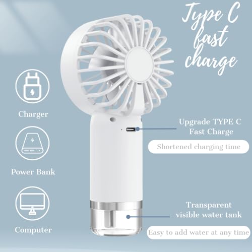 Orapink - Portable Fan with Mist, Personal Mini USB Fans Rechargeable, Misting Handheld Fans for Travel, Outdoor, Office