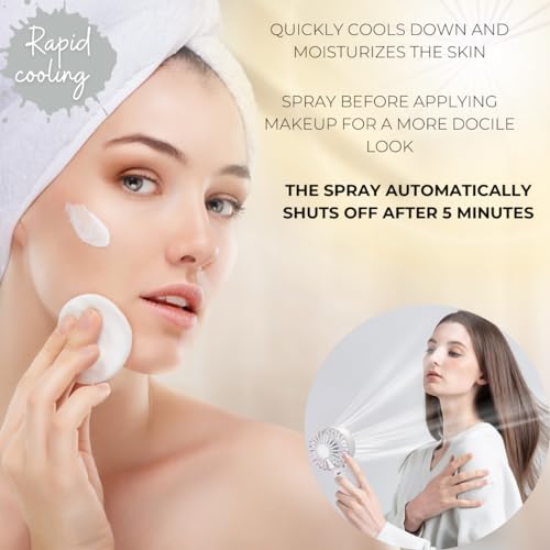 - 【QUICKLY CALM THE SKIN】- Carrying this mist hydrating fan when you go out in hot summer can quickly calm the skin. The mist sprayed is very delicate, spray on the face to quickly cool down and feel cool without ruining the delicate makeup Suitable for all skin types.It can also make the makeup look more docile when used before makeup.