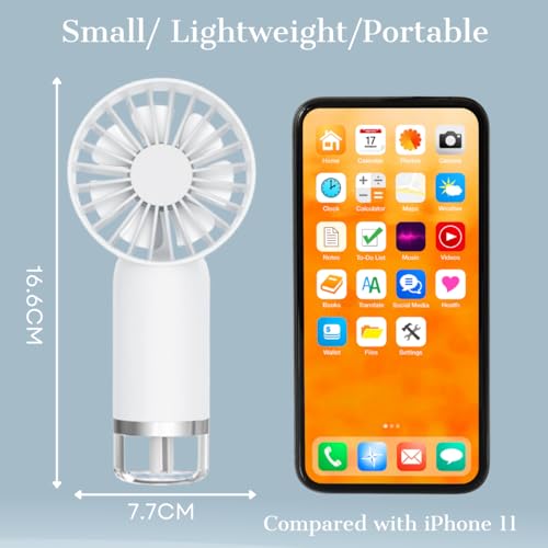 - 【LIGHT AND PORTABLE】- It features an attractive design, compact size, and lightweight build, approximately the size of a mobile phone. It can easily be carried in a bag or pocket when going out. Choose from three wind speeds to suit your needs. The fan provides strong airflow with minimal noise. The transparent water tank allows for easy water refills at any time.