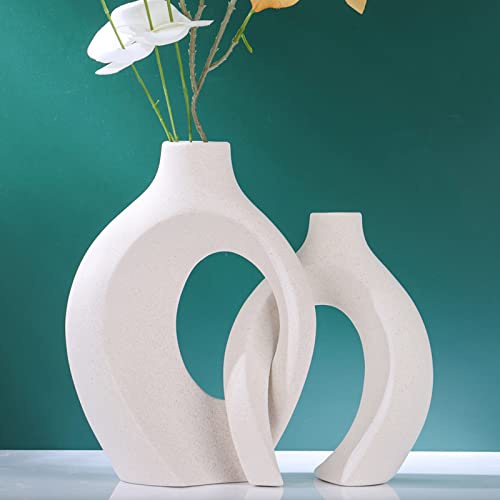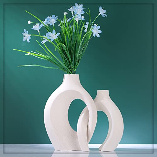 orenm - Orenm White Ceramic Vase Set of 2 Hollow Bohemian Decorative Vases Modern Home Decor Living Room Center Table Wedding Decors (White)