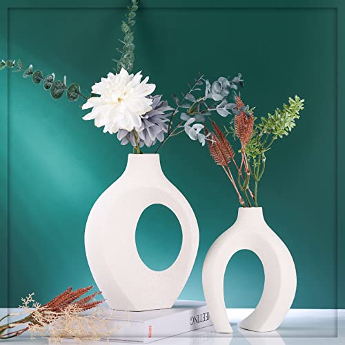 - 【Ceramic Vases Set of 2】“snuggle” ceramic vases, handcrafted from high-quality clay materials, and the matte textured surface brings a bohemian look. Suitable for dried flowers, reeds, pampas reeds, flowers, etc. Complement each other with different decorative styles.