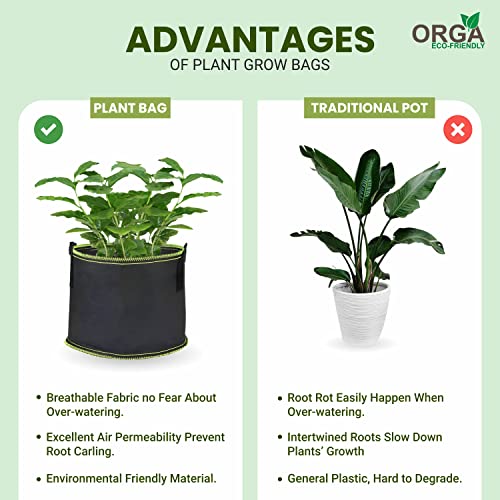 ORGA ECO-FRIENDLY - أكياس قماش غير منسوجة صديقة للبيئة لزراعة الطماطم وزهور الطماطم مع مقابض ووعاء نباتات تهوية غير منسوج للاماكن الداخلية والخارجية من اورجا، سعة 26.5 لتر، عبوة من 5 قطع