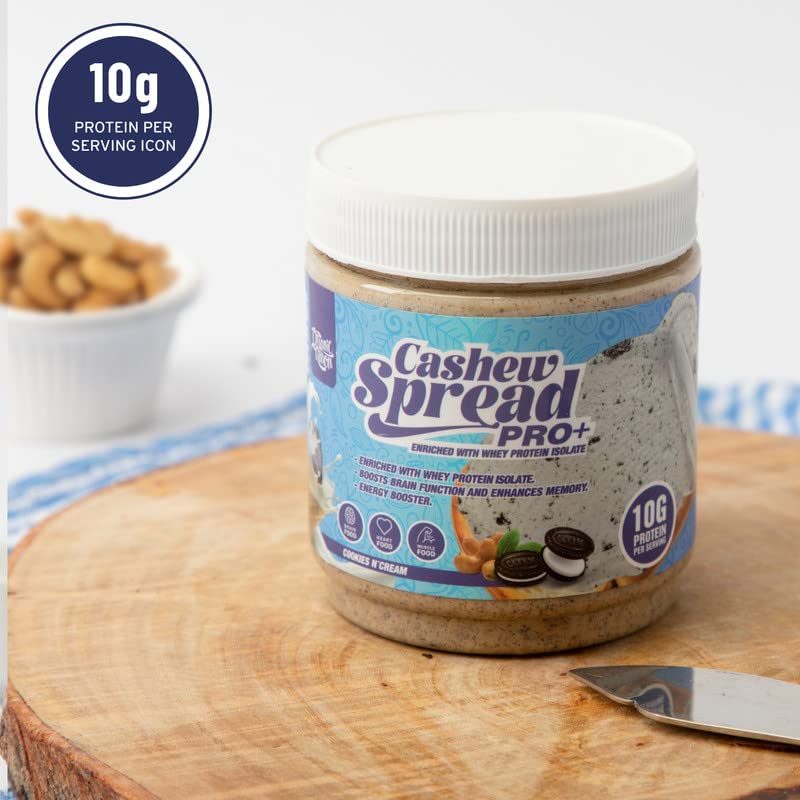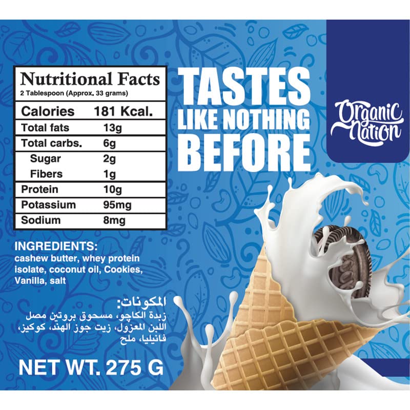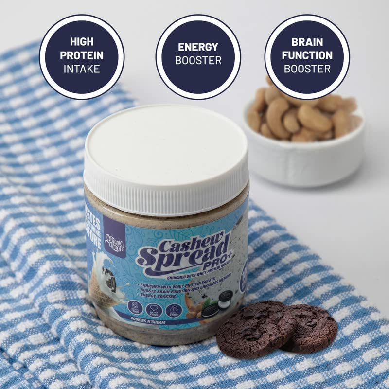 ORGANIC NATION - Organic Nation | Cashew Spread pro Enriched with Whey protein Isolate Cookies N'Cream | Rich in Protein | Healthy Fats | Mood Enhancer | 2g Sugar | 13g Fats | 10g Protein | 275g
