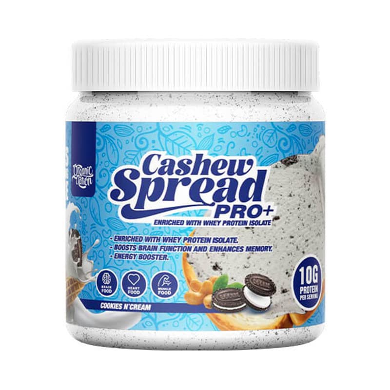- GREAT SOURCE OF PROTEIN: Organic nation Cashew Spread PRO+ is enhanced with Whey Protein Isolate Each serving (2 TBS) contains 10g Protein