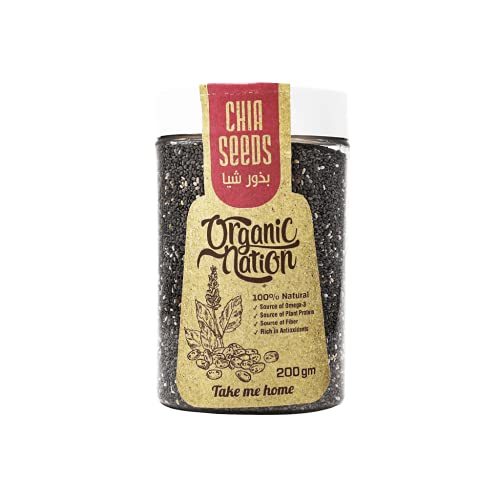 Organic Nation - Organic Nation | Chia Seeds |100% Natural | Non-GMO | Whole Grain | Source of Plant Protein | Rich in Fiber | Antioxidant | Diet Friendly | Omega-3 | Lowers Blood Sugar Levels | 200g