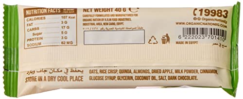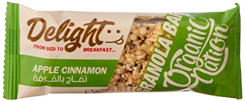ORGANIC NATION - Organic Nation | Delight Granola Bar | High in Fiber | Natural Ingredients | Boosts Energy | Healthy Snack | Sustained Energy | 3g Protein | 107 calories | 40g | Apple Cinnamon