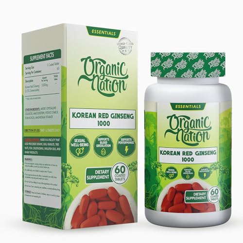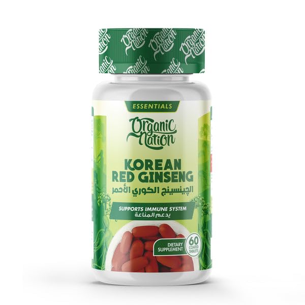 Organic Nation - الجينسنغ الكوري الاحمر من اورجانيك نيشن، 60 حبة - 60 قرص مطلي