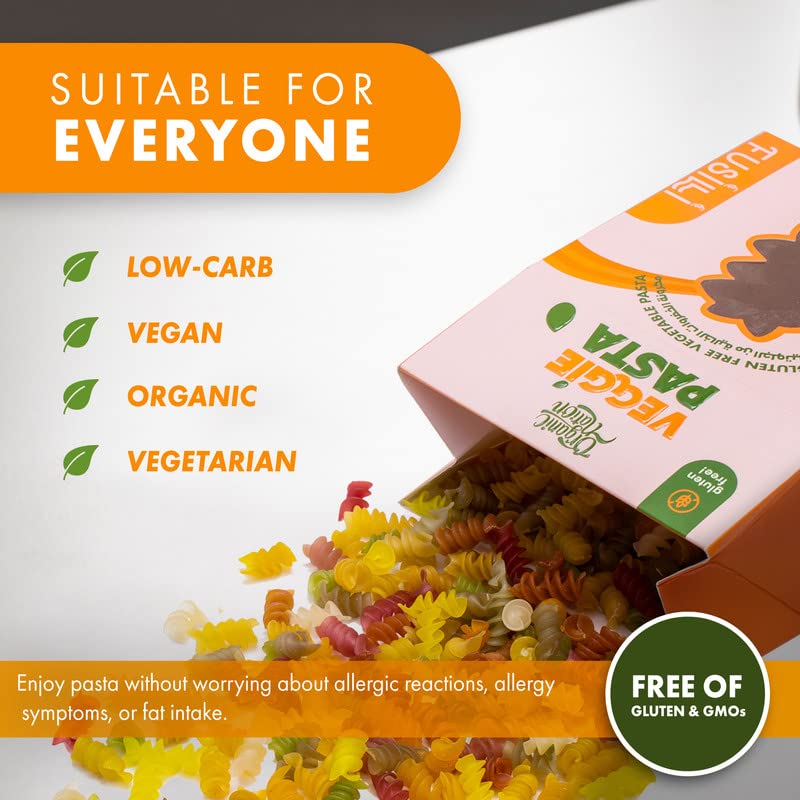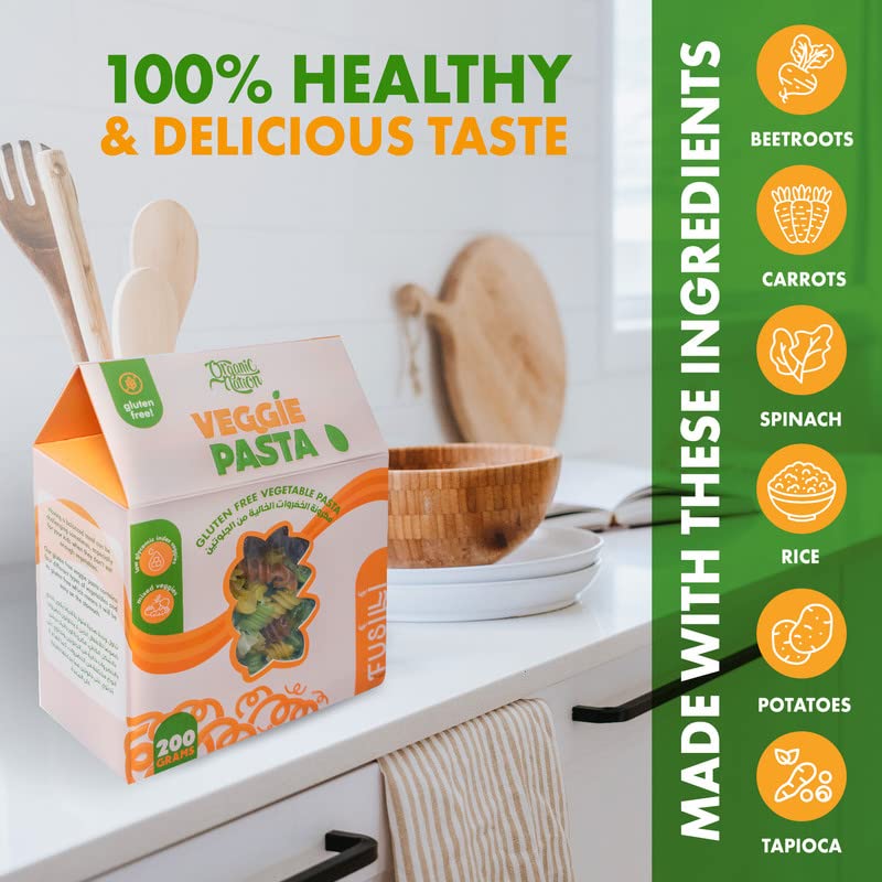 - GLUTEN-FREE PASTA: Made with beetroots, carrots, spinach, rice, potatoes and tapioca. Our vegetarian, vegan and gluten-free pasta is suitable for everyone.