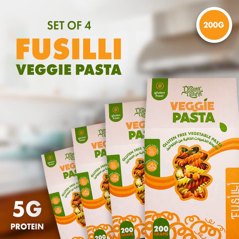 ORGANIC NATION - ORGANIC NATION | Set of 4 Fusilli Veggie Pasta | 200g | 5g Protein | 100% Healthy | Quick Cooking | Gluten Free | Delicious Taste | Made with Beetroots, Carrots, Spinach, Rice, Potatoes