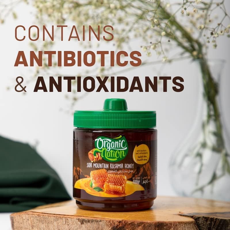 ORGANIC NATION - Organic Nation | Sidr Mountain Honey | 100% Pure | Anti-Bacteria | Antioxidant | Supports Immunity | Energy Booster | Safe for Children | Consumed by Athletes | 400g