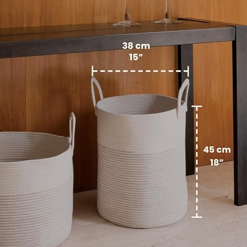 OrganiHaus - سلال تخزين منسوجة - سلة ألعاب كبيرة - سلة تخزين بخيوط قطنية مع مقابض - سلة تخزين للحمام من اورجاني هوس - لون بني مع نقاط (38 × 45 سم)
