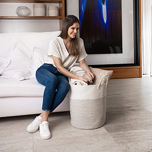 - سلة ألعاب من الحبال الطبيعية وصديقة للبيئة مصنوعة من القطن المصنوع يدويًا الذي لا يحتوي على البلاستيك أو المواد الكيميائية القاسية أو السموم أو الإضافات الضارة. هذه مادة طبيعية متجددة لمنزلك الريفي أو منزلك بالنمط البوهيمي. آمنة للأطفال والحيوانات الأليفة. تسمح لك المقابض الكبيرة لسلة تخزين الحمام بحملها بسهولة.