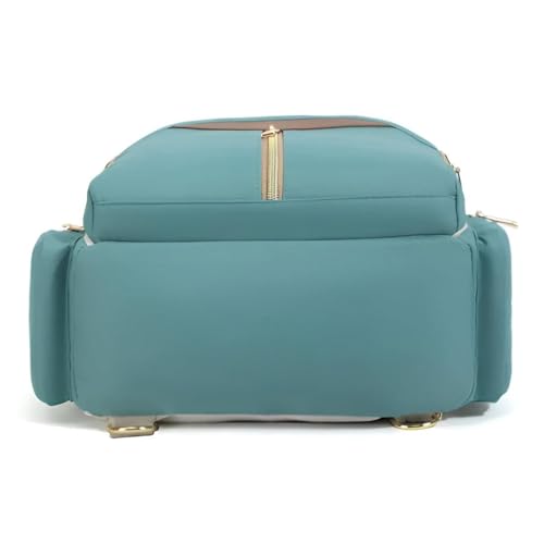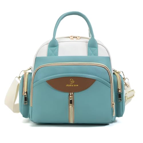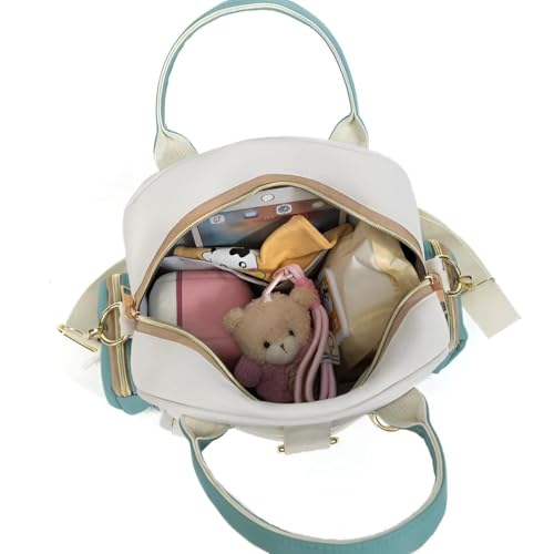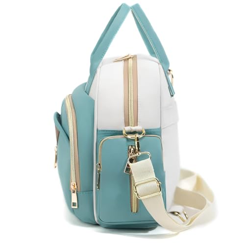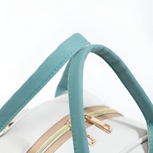 Generic - شنطة كبيرة توت للحضانة - شنطة حفاضات فاخرة بلون تركواز مع لمسات بيضاء وقطع معدنية ذهبية وجيوب تخزين متعددة ووظيفة كروس قابلة للتعديل.